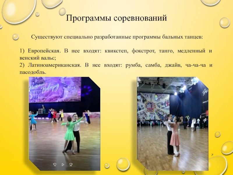 входят: квикстеп, фокстрот, танго, медленный и венский вальс;