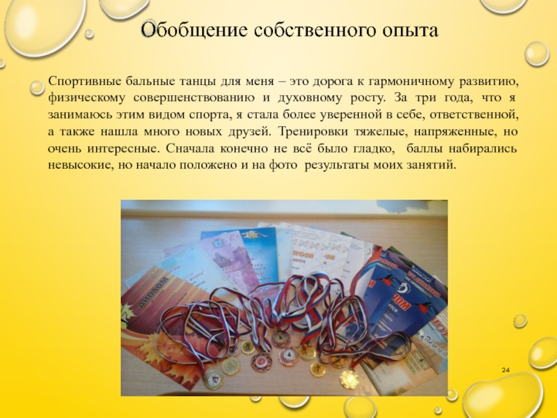 гармоничному развитию, физическому совершенствованию и духовному росту. За три года, что я занимаюсь этим видом спорта, я стала более уверенной в себе, ответственной, а также нашла много новых друзей. Тренировки тяжелые, напряженные, но очень интересные. Сначала конечно не всё было гладко, баллы набирались невысокие, но начало положено и на фото результаты моих занятий.