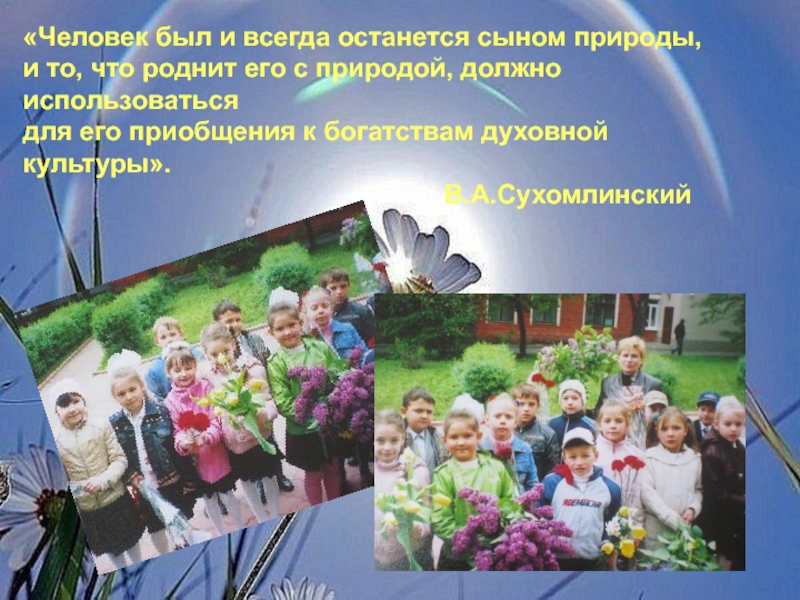 «Человек был и всегда останется сыном природы, и то, что роднит его с природой, должно использоваться для его приобщения к богатствам духовной культуры».