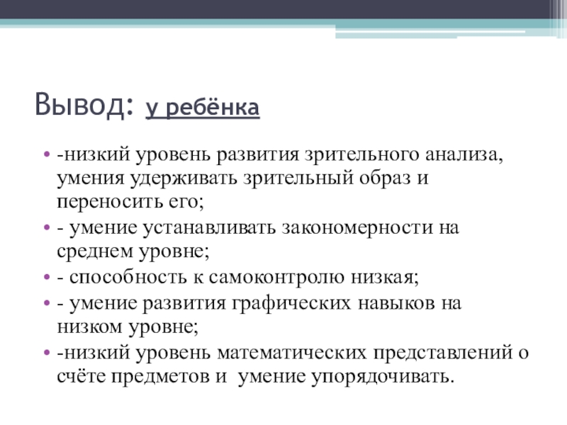 - навыки самоконтроля отсутствуют;