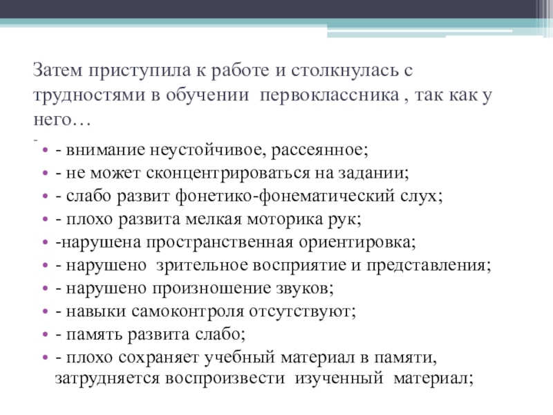 - плохо сохраняет учебный материал в памяти, затрудняется воспроизвести изученный материал;