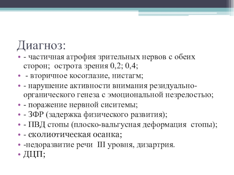 - нарушено зрительное восприятие и представления;