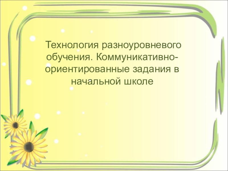 Слайд 4 Технология разноуровневого обучения. Коммуникативно-ориентированные задания в начальной школе