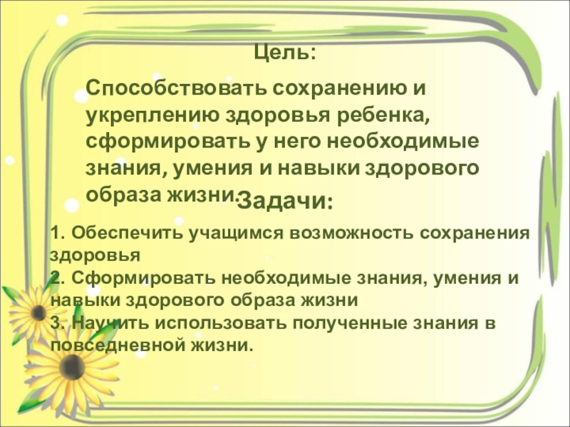 2. Сформировать необходимые знания, умения и навыки здорового образа жизни