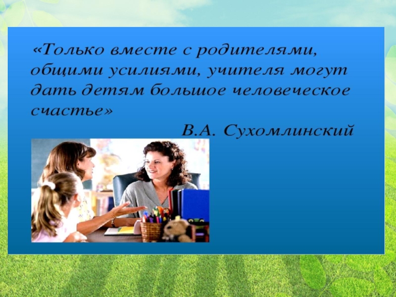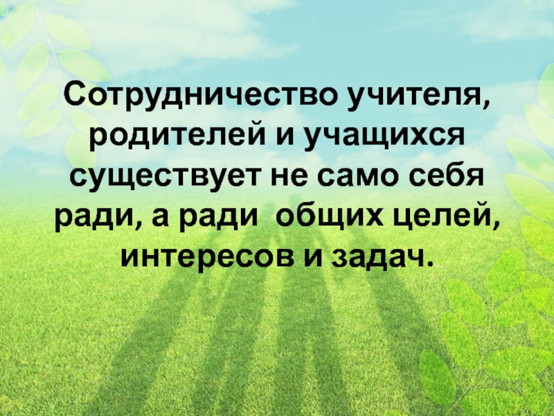 Слайд 2Сотрудничество учителя, родителей и учащихся существует не само себя ради, а