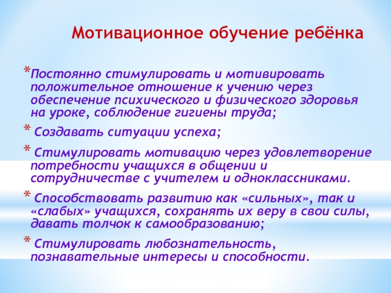 Постоянно стимулировать и мотивировать положительное отношение к учению через