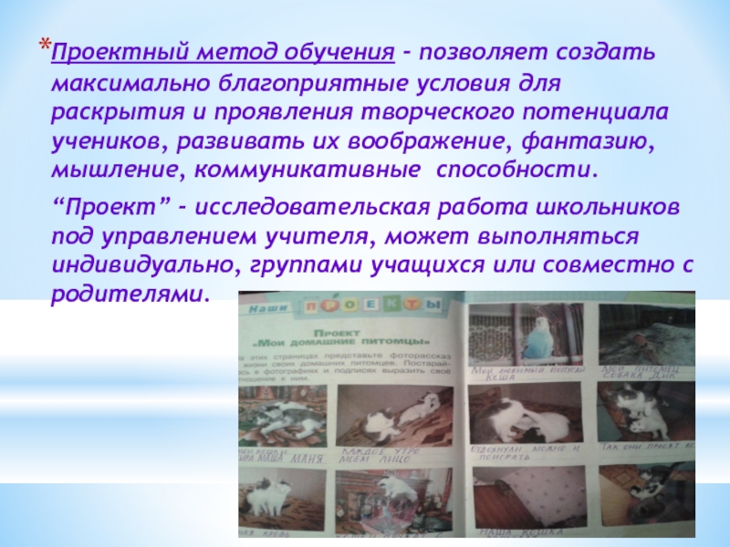Слайд 21Проектный метод обучения - позволяет создать максимально благоприятные условия для раскрытия