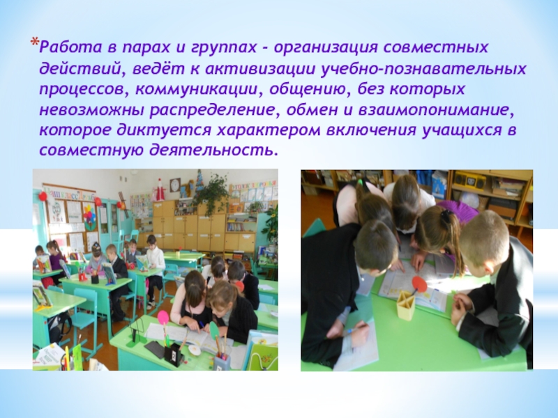Слайд 17Работа в парах и группах - организация совместных действий, ведёт к