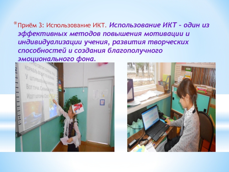 Слайд 9Приём 3: Использование ИКТ. Использование ИКТ – один из эффективных методов