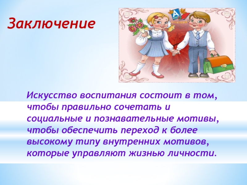 познавательные мотивы, чтобы обеспечить переход к более высокому типу внутренних мотивов, которые управляют жизнью личности.