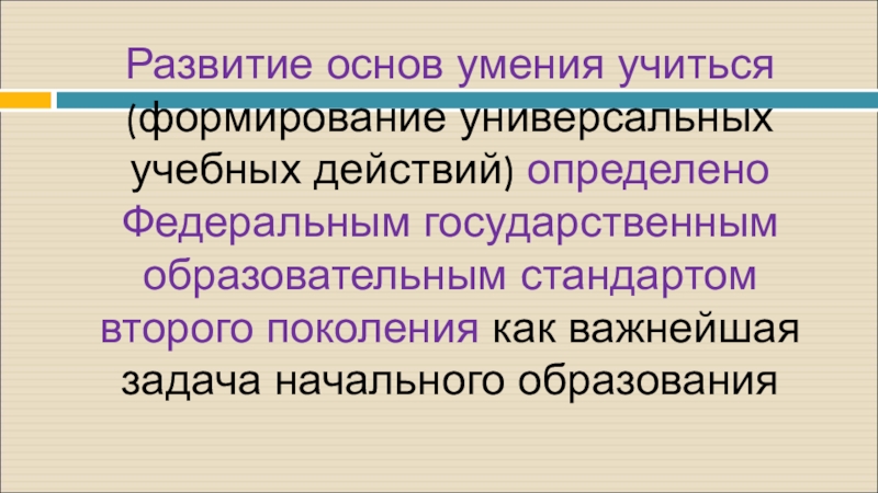 Слайд 2Развитие основ умения учиться (формирование универсальных учебных действий) определено Федеральным государственным