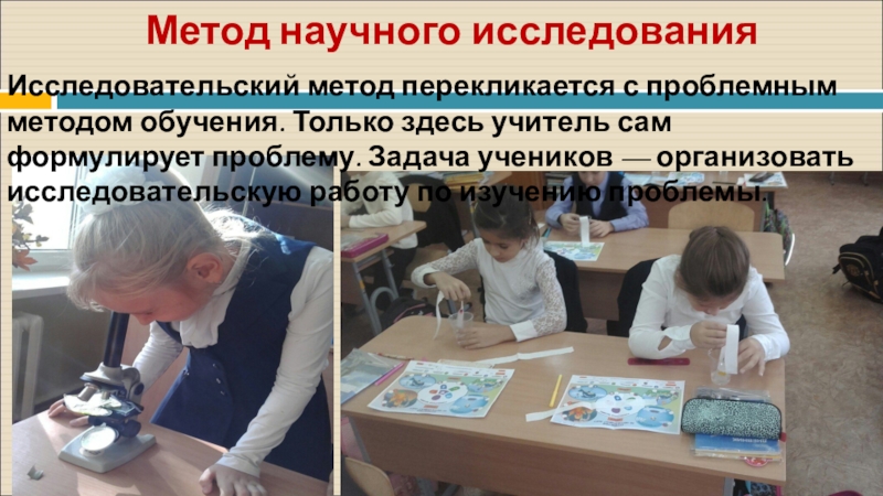 Исследовательский метод перекликается с проблемным методом обучения. Только здесь