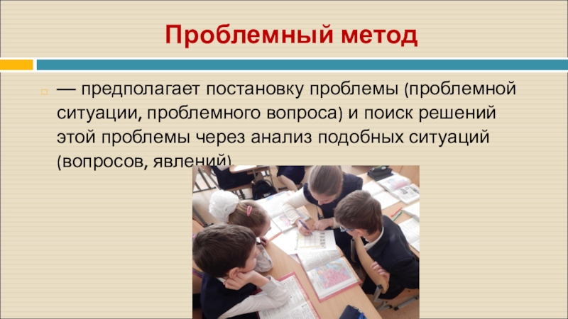 — предполагает постановку проблемы (проблемной ситуации, проблемного вопроса) и