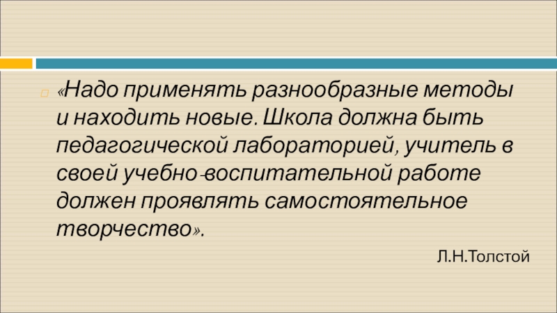 Слайд 32«Надо применять разнообразные методы и находить новые. Школа должна быть педагогической
