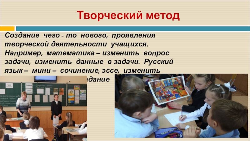 Создание чего - то нового, проявления творческой деятельности учащихся. Например,