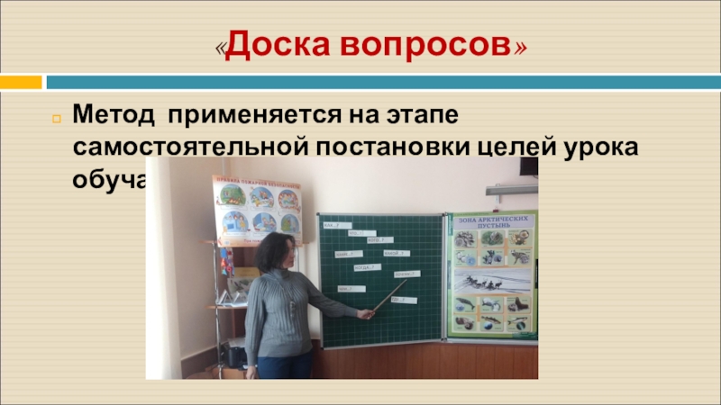 Метод применяется на этапе самостоятельной постановки целей урока обучающимися.