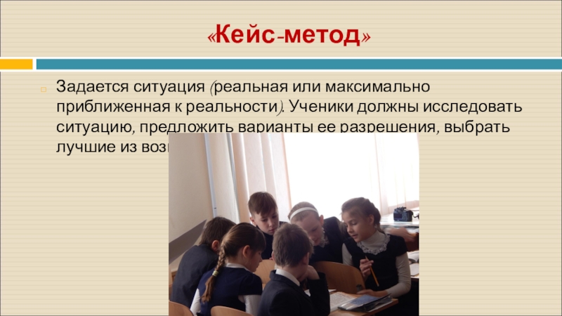 Задается ситуация (реальная или максимально приближенная к реальности). Ученики должны исследовать