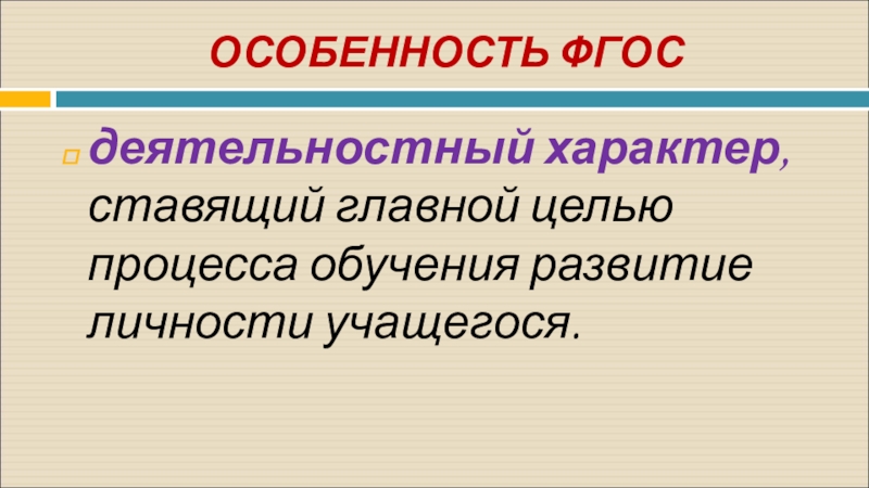Слайд 3ОСОБЕННОСТЬ ФГОС