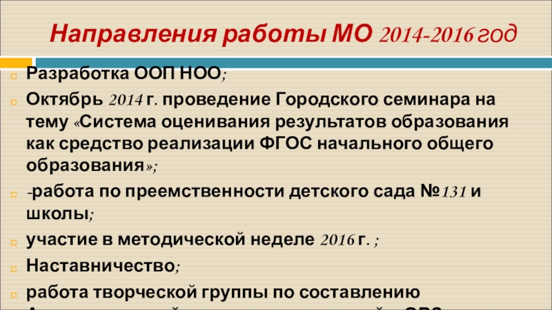 семинара на тему «Система оценивания результатов образования как средство реализации ФГОС начального общего образования»;
