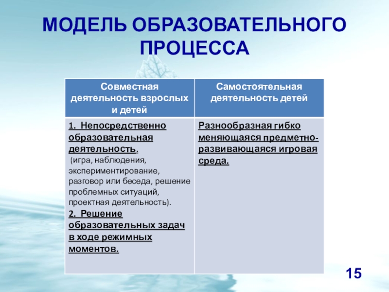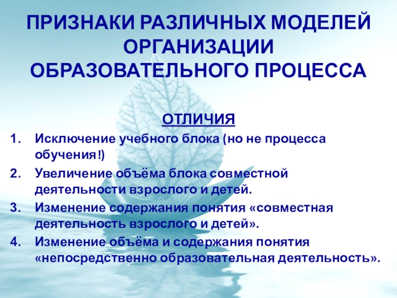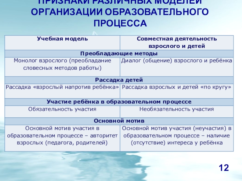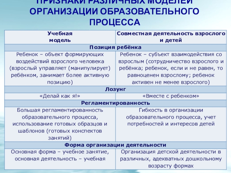ПРИЗНАКИ РАЗЛИЧНЫХ МОДЕЛЕЙ ОРГАНИЗАЦИИ ОБРАЗОВАТЕЛЬНОГО ПРОЦЕССА