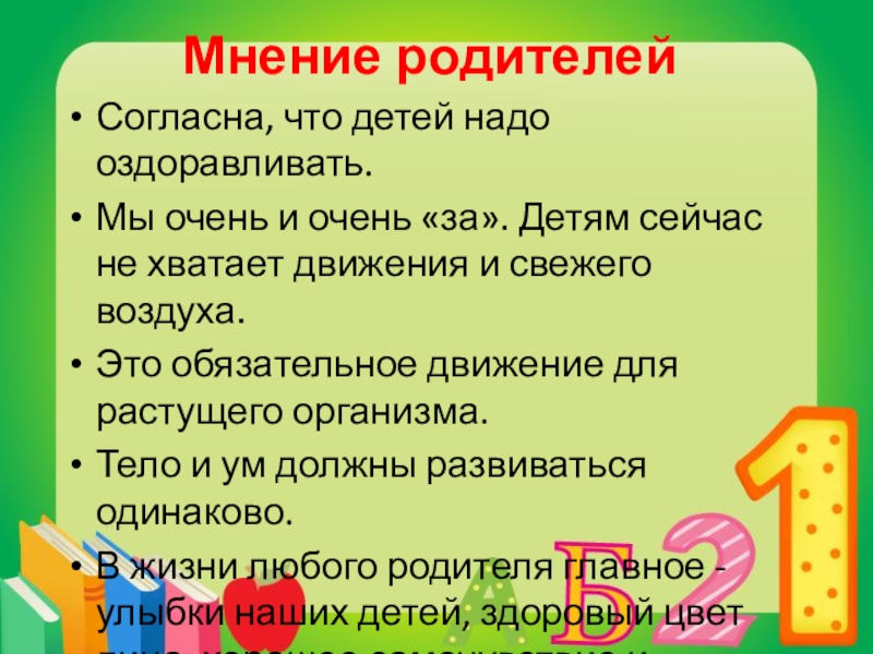 Мнение родителейСогласна, что детей надо оздоравливать.Мы очень и очень «за». Детям сейчас не хватает движения и свежего