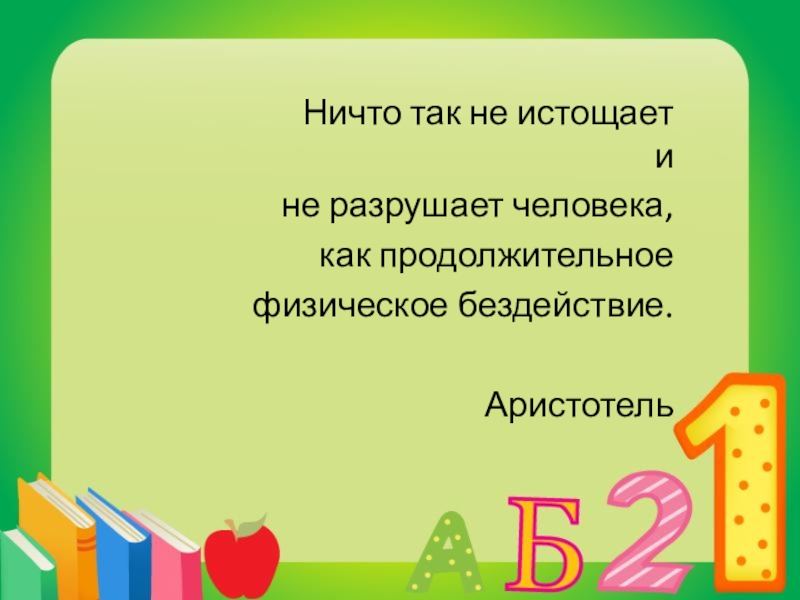 Ничто так не истощает и не разрушает человека, как продолжительное физическое бездействие.Аристотель