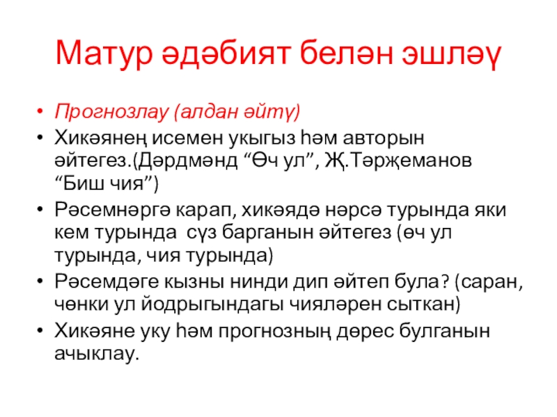 Хикәяне уку һәм прогнозның дөрес булганын ачыклау.