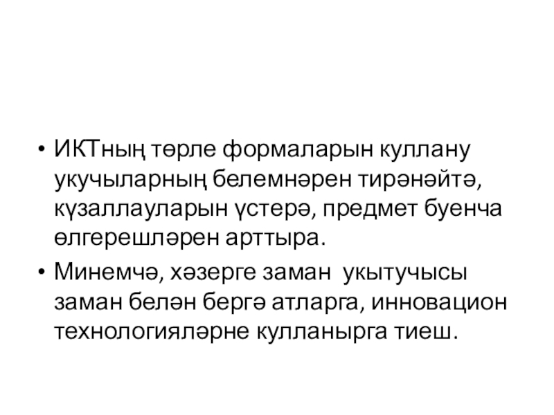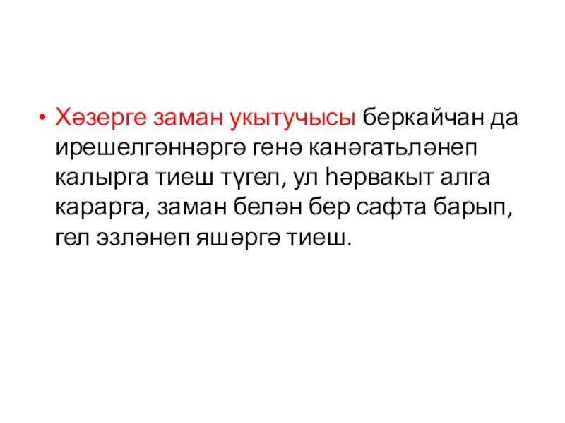 Слайд 30Хәзерге заман укытучысы беркайчан да ирешелгәннәргә генә канәгатьләнеп калырга тиеш түгел,