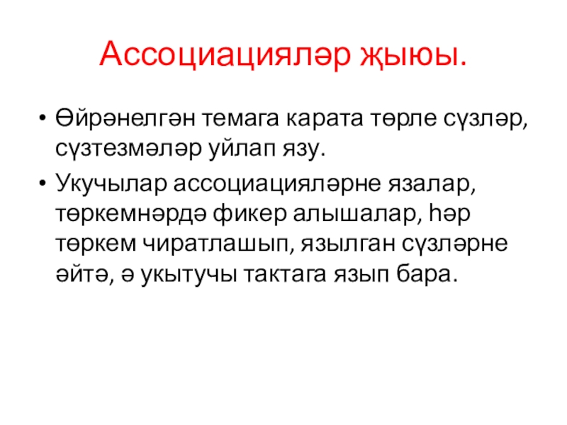 Өйрәнелгән темага карата төрле сүзләр, сүзтезмәләр уйлап язу.