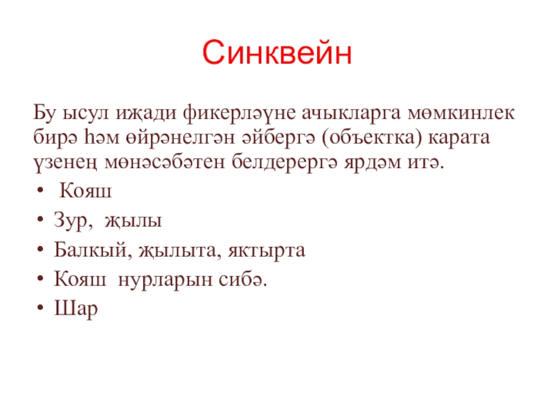 Бу ысул иҗади фикерләүне ачыкларга мөмкинлек бирә һәм өйрәнелгән әйбергә (объектка)