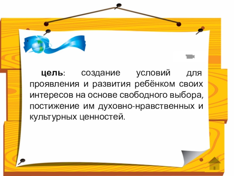 цель: создание условий для проявления и развития ребёнком своих интересов