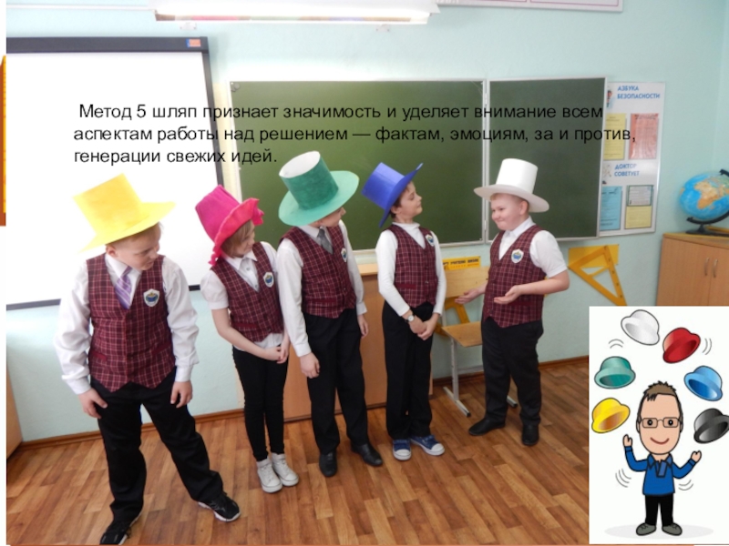 Слайд 13 Метод 5 шляп признает значимость и уделяет внимание всем аспектам