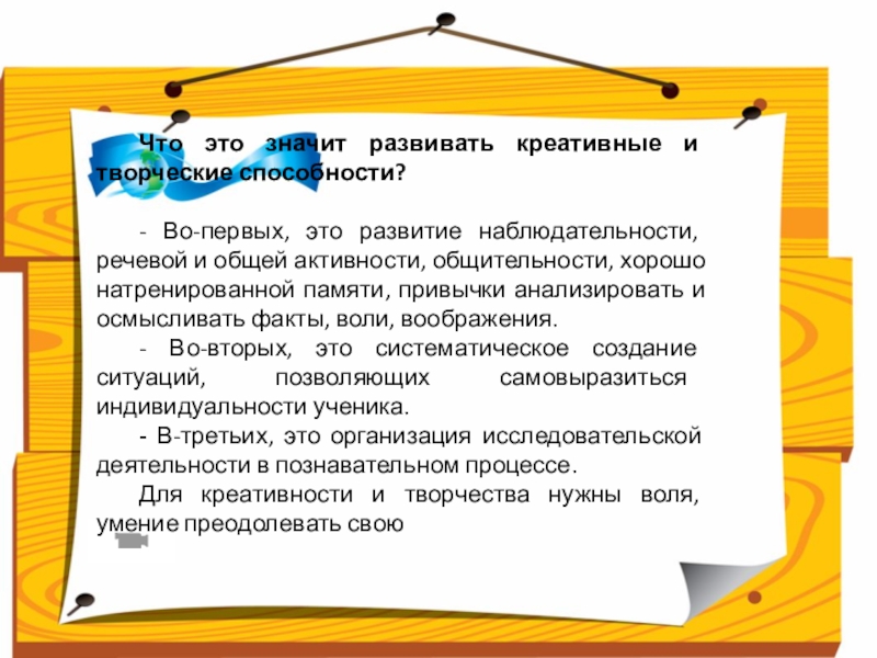 - Во-вторых, это систематическое создание ситуаций, позволяющих самовыразиться индивидуальности ученика.