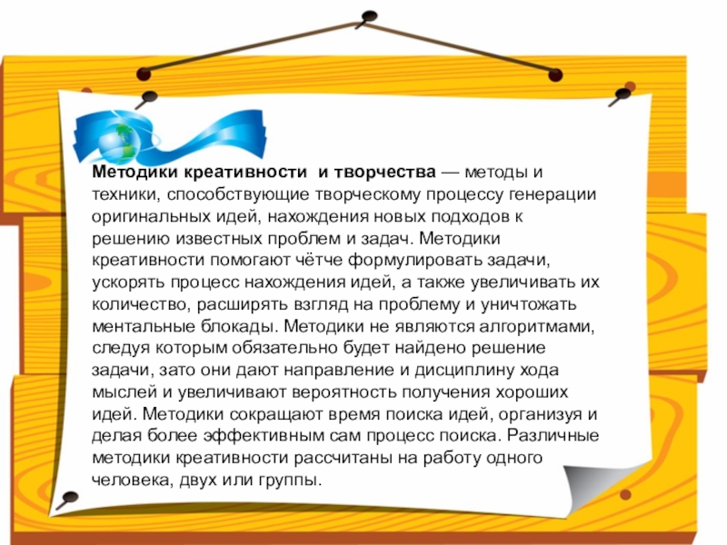 Слайд 10Методики креативности и творчества — методы и техники, способствующие творческому процессу генерации