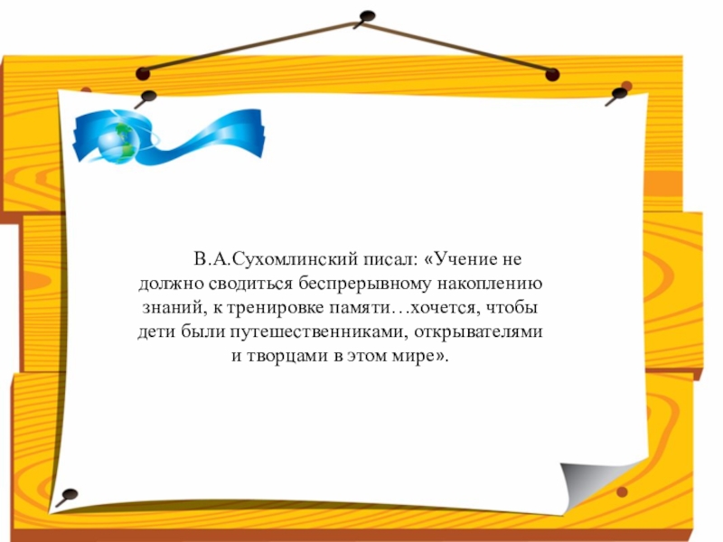В.А.Сухомлинский писал: «Учение не должно сводиться беспрерывному накоплению знаний, к тренировке
