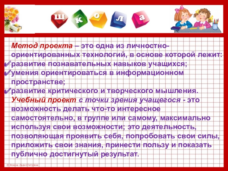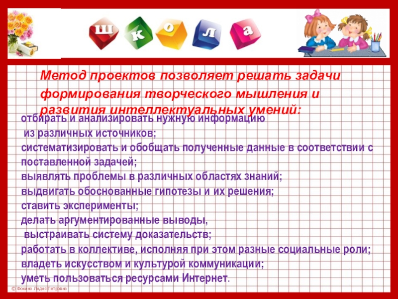 Метод проектов позволяет решать задачи