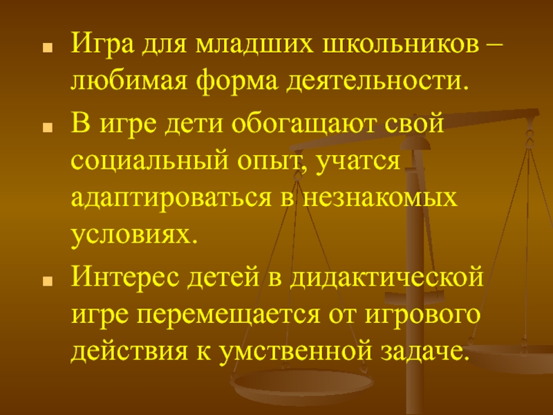 Слайд 3Игра для младших школьников – любимая форма деятельности.