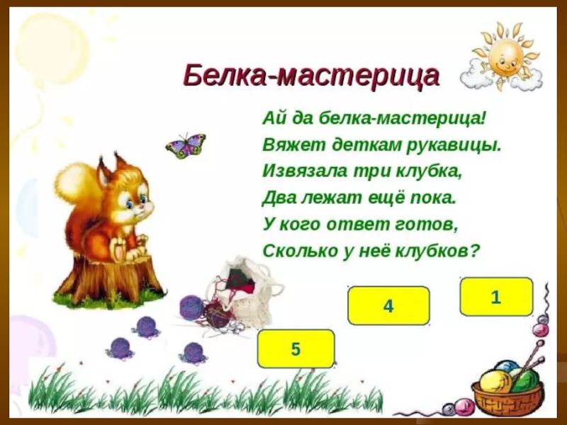 определить число, которое играющий должен составить из двух чисел ( например, 10). Взрослый бросает ребенку мяч и называет какое-либо число (например, 7). Поймав мяч, ребенок говорит число(3), которое в сумме с названным взрослым составляет десять: 9 и 1, 8 и 2, 6 и 4, 5 и 5 и т.д.