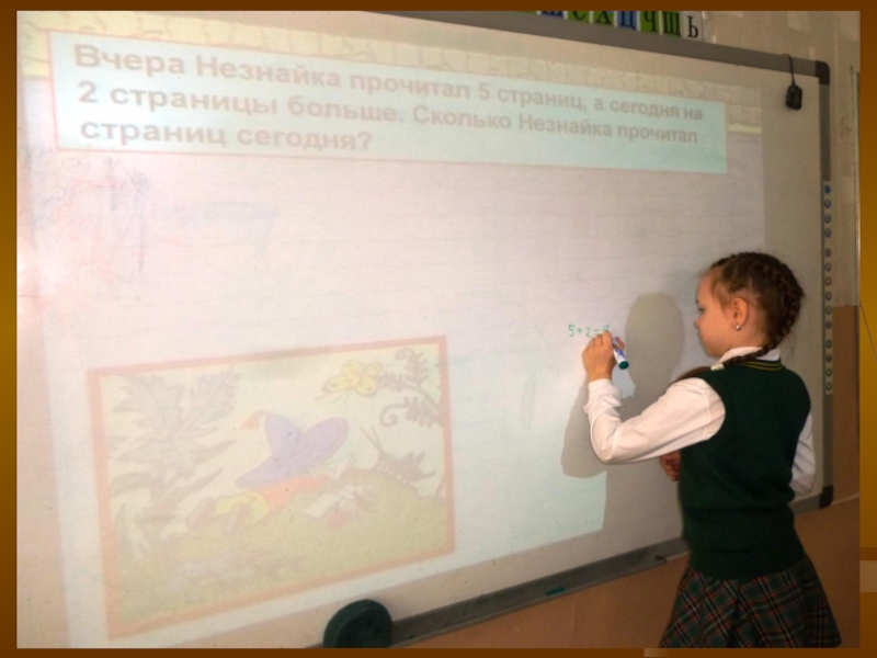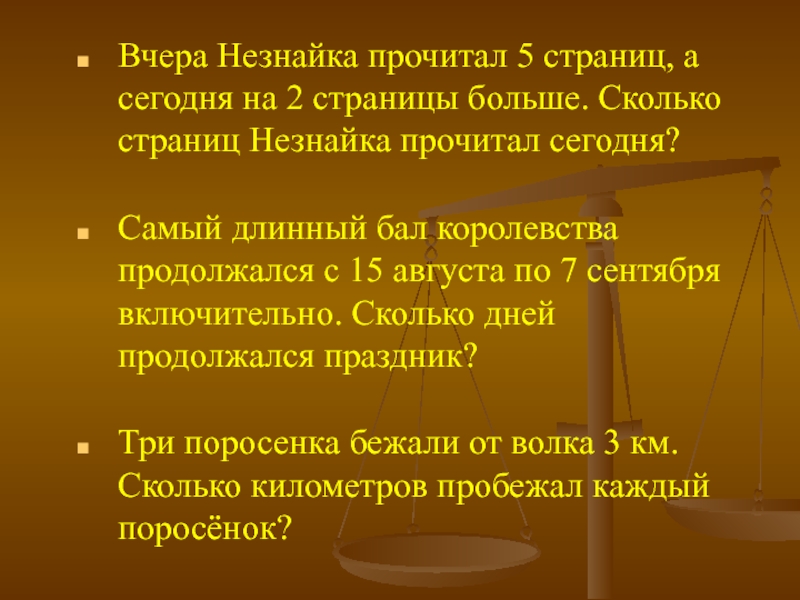 Слайд 12Вчера Незнайка прочитал 5 страниц, а сегодня на 2 страницы больше.