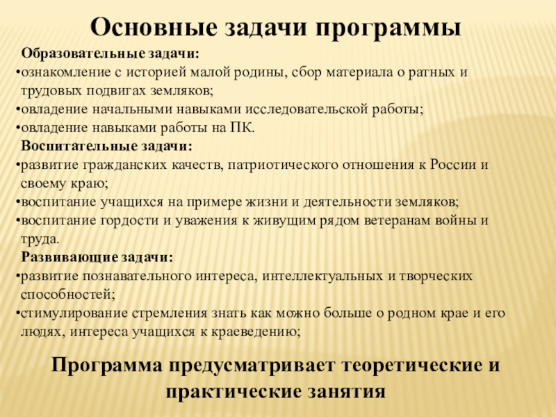Подходы к реализации программы