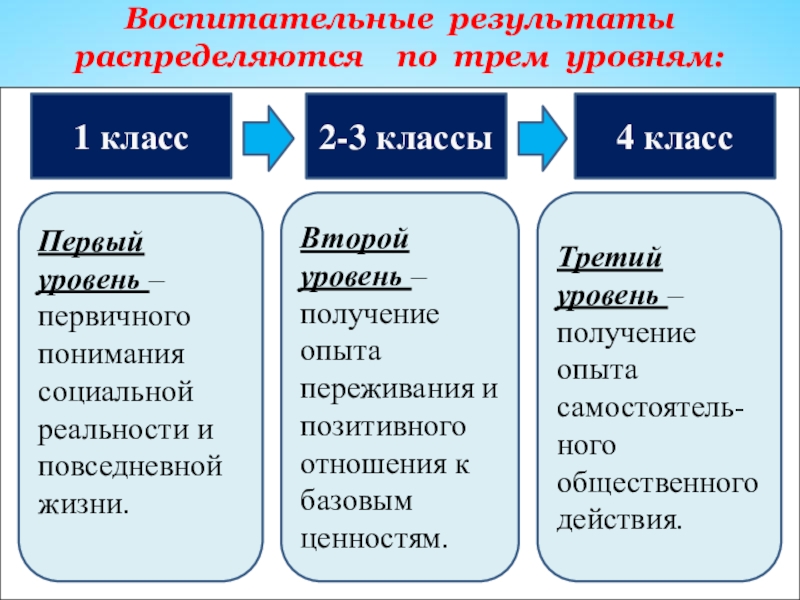 Слайд 18Воспитательные результаты распределяются по трем уровням:
