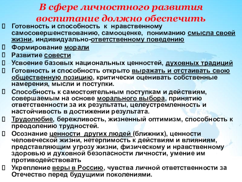 Слайд 4В сфере личностного развития воспитание должно обеспечить