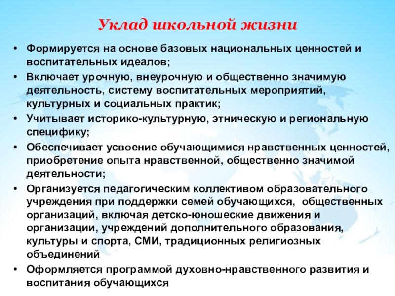 Включает урочную, внеурочную и общественно значимую деятельность, систему воспитательных мероприятий, культурных и социальных практик;