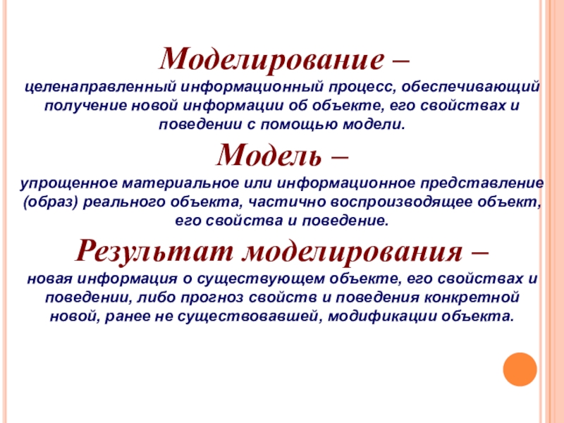 Модель – это упрощенный «заместитель» некоторого объекта, сохраняющий все его признаки.