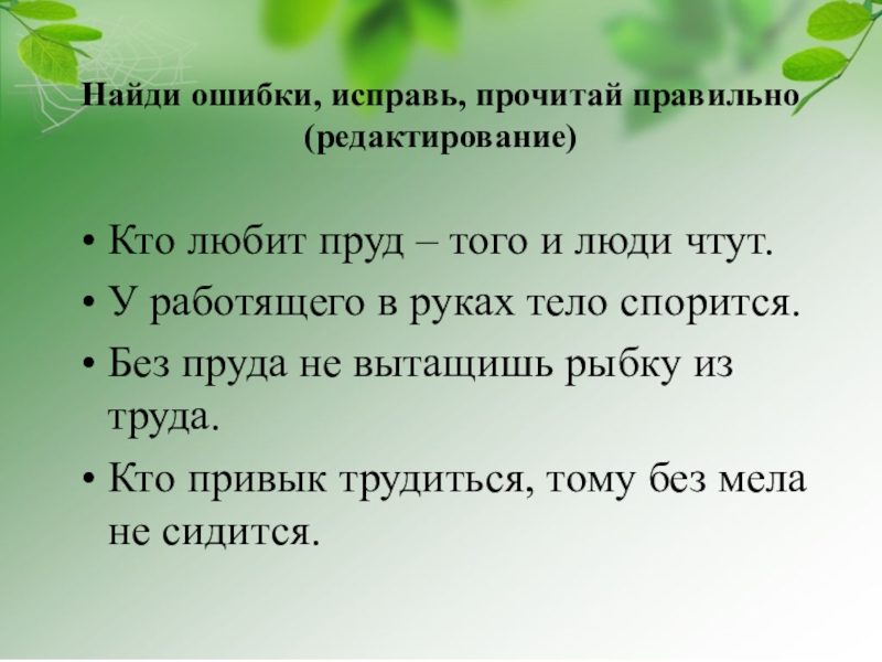 Слайд 20Найди ошибки, исправь, прочитай правильно