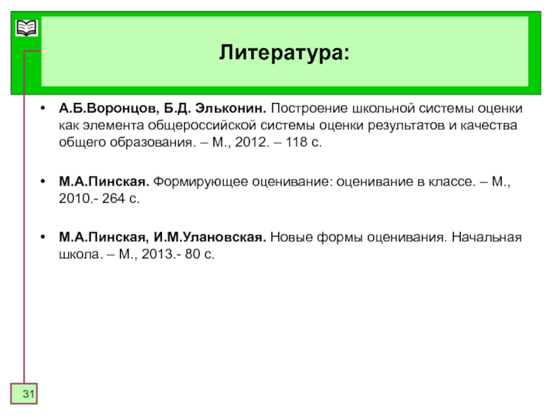 М.А.Пинская, И.М.Улановская. Новые формы оценивания. Начальная школа. – М., 2013.- 80 с.