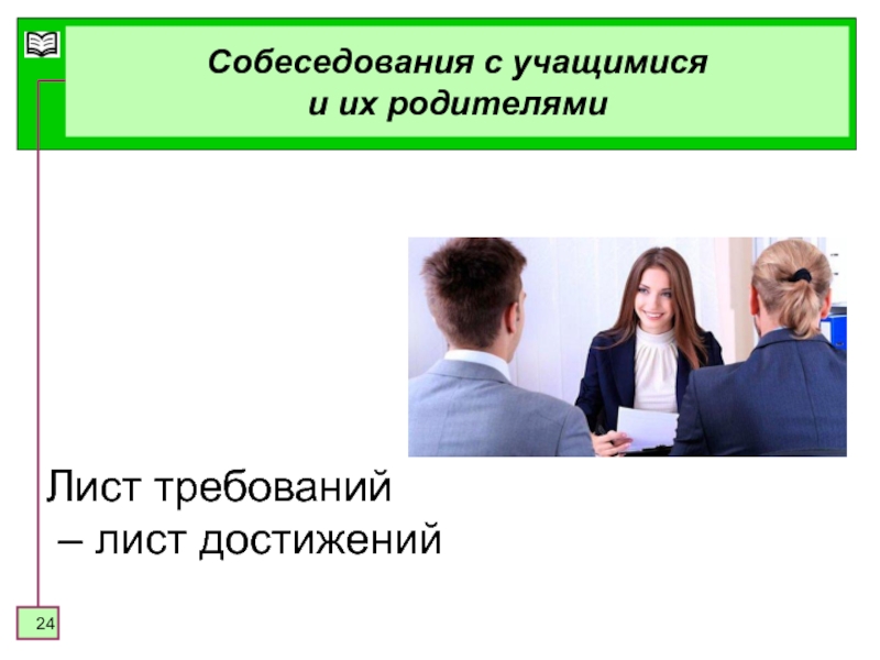 Слайд 24Собеседования с учащимися