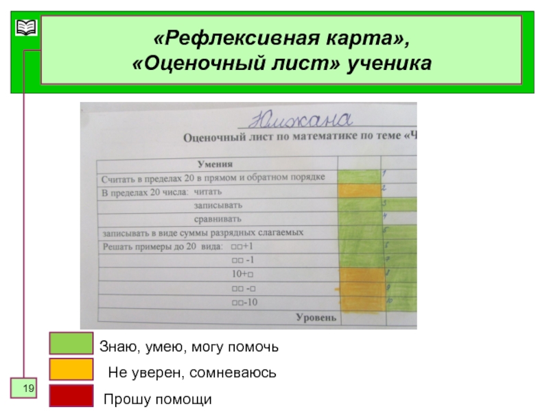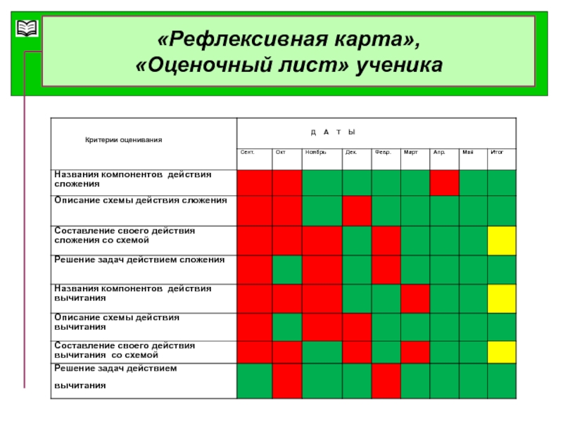 «Рефлексивная карта или оценочный лист ученика»