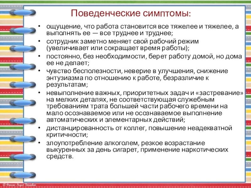 чувство бесполезности, неверие в улучшения, снижение энтузиазма по отношению к работе, безразличие к результатам;