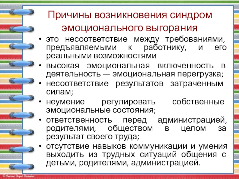 Слайд 11Причины возникновения синдром эмоционального выгорания